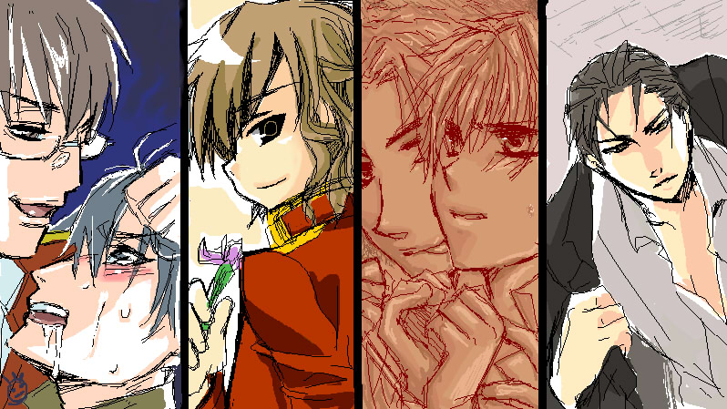 もじかきさん、えかきさん入り乱れての楽園でしたΣ 最初の二時間くらい…?ずっと実は萌え語りとかしてたのですが(笑) よし絵を描こう!ということでまずは隣の人にリクエスト★ 並んだ順が左からもつこさん、もりた、ゆのさん。【義主】⇒【鍵主】⇒【主輪】 見事に皆正直に好きカプを暴露しました!!!!(笑)いいじゃない好きなんですもの! カプものなので追記にたたみますよッ もつこさん【主輪】、もりた【義主】、ゆのさん【鍵主】