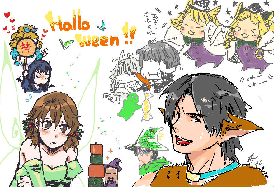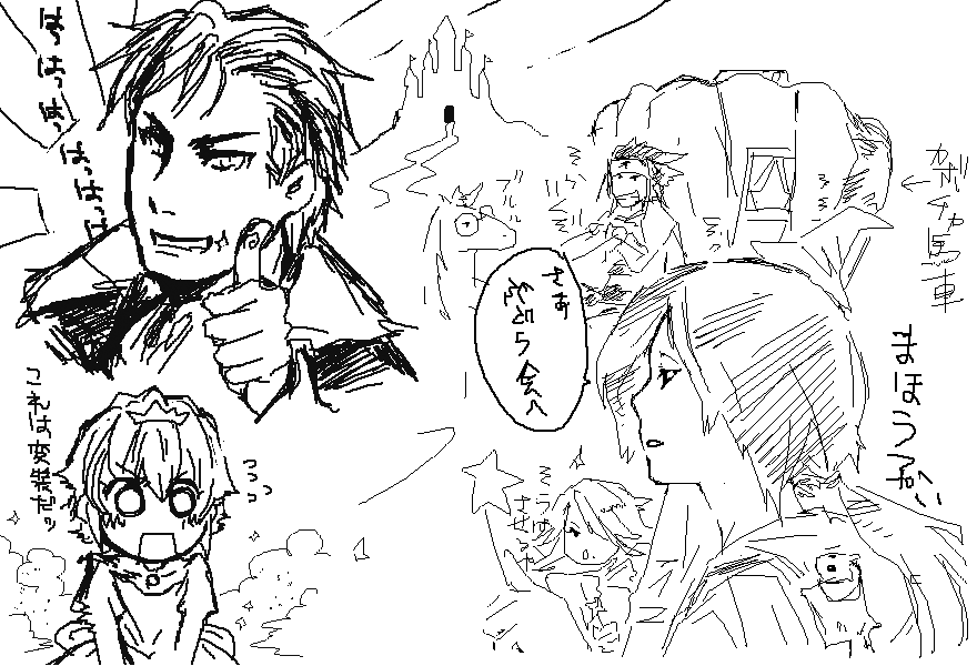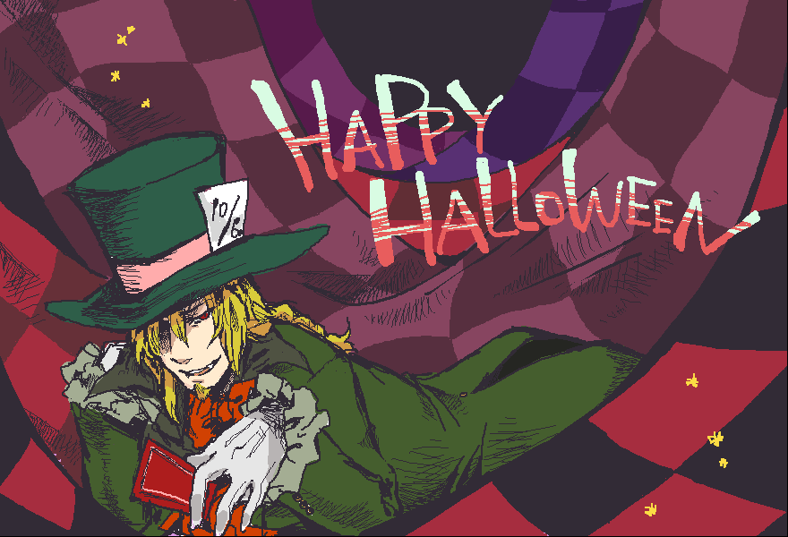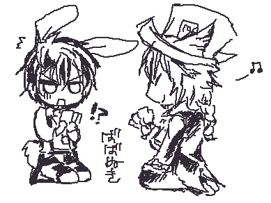 …というわけで、ものはらハロウィンの絵茶ログですv 参加者様は桔梗さん、桐久さん、ペテロさん、あしはな(仮)さん、桃生さん、もりたでした♪ BLは無いですが(珍しく/笑)長いので追記にたたみまするー。 でももりたのコメントが腐っていますのでご注意です( 最初に魔女アンジーとかかぼぱん白をらくがいていたのですがログとってませんでしたあは 楽しくお話させていただきつつ、描いたもの。 先日アップした帽子屋鍵ちゃんカラー版(笑) シーツごろんないめえじ…で、不思議チェック空間でなんとなくアリスvv 10/6ってなんの数字でしょうね?て話してて今調べてみたのですが 「10シリング6ペンス」のことで帽子の値段だそうな! …値札とってないのか…どんだけものぐさか…(笑) それでもって差分の耳だし版。 あーやっぱり多少帽子が歪もうと耳出しているほうが鍵ちゃんらしいですねェ(笑) あとカードはなんとなーくで持たせてみたのですが、 (多分脳内でシルクハット=マジシャンの印象があったからだと思われる) 次は何かこうかな~の時トランプしている坊と鍵さん! と素敵リクを頂いたので描いて見ました(*´∇`*) 帽子屋鍵ちゃんは愛用のカードなので傷とかで完全把握しているそうな(笑) きっとあっ勝てるかなー!?なところまでわくわくさせておいて一気に叩き落すやり口が得意だ!! 一定数負けるたびにキスですっておくさん… 終わらないトランプゲーム……ごっほ…お茶にもきっと何か入ってますねうん。 そしてペテロさんとあしはなさんがお絵かきに参戦! お題はハロウィン、キャラは自由で好きなところにー!でした。 ニギヤカかわいいです(〃'∇'〃)ワー! 狼男な燈治、わいるどで格好いいvみみを…みみを触らせてくだs ちび神使はお前らをくってやるぞおおといって追いかけたいです( 私は珍しくおなごを多目に描きましたーワー 妖精いちるちゃんと小悪魔カナメン、アリスミカみゅん☆で(笑) そして最後はさっき描いてなかったキャラを自由に描こう!と描き始めたら こんなことになってました。 カ…カオスなシンデレラ劇場に…!!!!!(笑) 嘉門は王子様です。でもきっと舞踏会じゃなくて武道会開いてます。 私的には馬に注目して欲しいところです(笑) 裏では蒐が四角の覇者と化したり大変面白かったです…ごふごふ 童話世界パロもおもしろいなーと思った絵茶でしたvv 素敵なハロウィン絵茶、お付き合いいただき有難う御座いました♪ はーやっぱりコスプレは色々妄想広がるなぁッ(笑) PR TrackbacksTRACKBACK URL : CommentsComment Form |