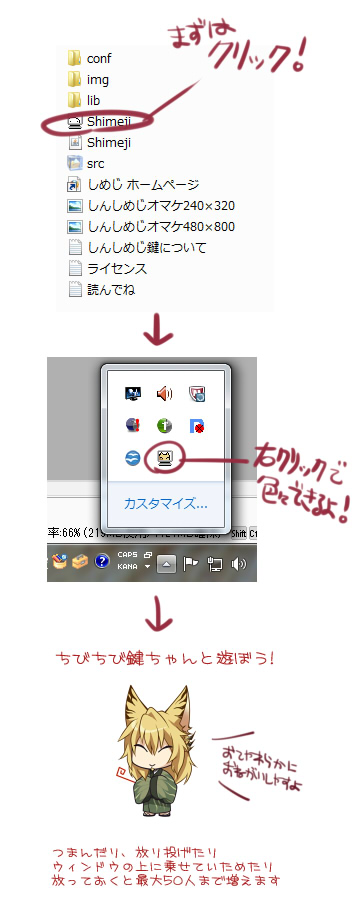 お誕生日おめでとう!!! そんなわけで デスクトップマスコットらしきものを作ってみました。 しんしめじ~鍵~なのです(`v´)<ふふ http://ux.getuploader.com/kocyou/download/2/shinshimeji.zip ↑こちらでダウンロードできます。 パスワードは【ken326】なのですぬしさま! ウインドウを小さくすると上にのっかったり、たまにぶん投げられたりします(笑) 色々とちまちまアクションしますので、デスクトップの片隅にでも置いていただければ幸いですv ちなみに最大数だすとうっじゃうじゃして大変なので注意です(笑) そして同梱されている待ち受け絵は鍵主なのですvV ♪~( `v´)Σ(`□´;) 出会ってまだ一年ですが。鍵ちゃん、これからもずっと愛してるのですよ!! 2010.12.07 Tue 03:39:01 鬼祓師素材【ぴこ鍵】 |